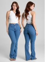 A modelagem boot cut tem o caimento ajustado nas pernas e levemente ampla barra. Cintura media Fechamento com botão e zíper Bolsos frontais falsos e posteriores funcionais Barra simples Modelagem: boot cut Tecido: Jeans Tipo de lavagem: Azul Cor: Azul