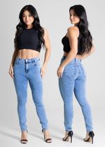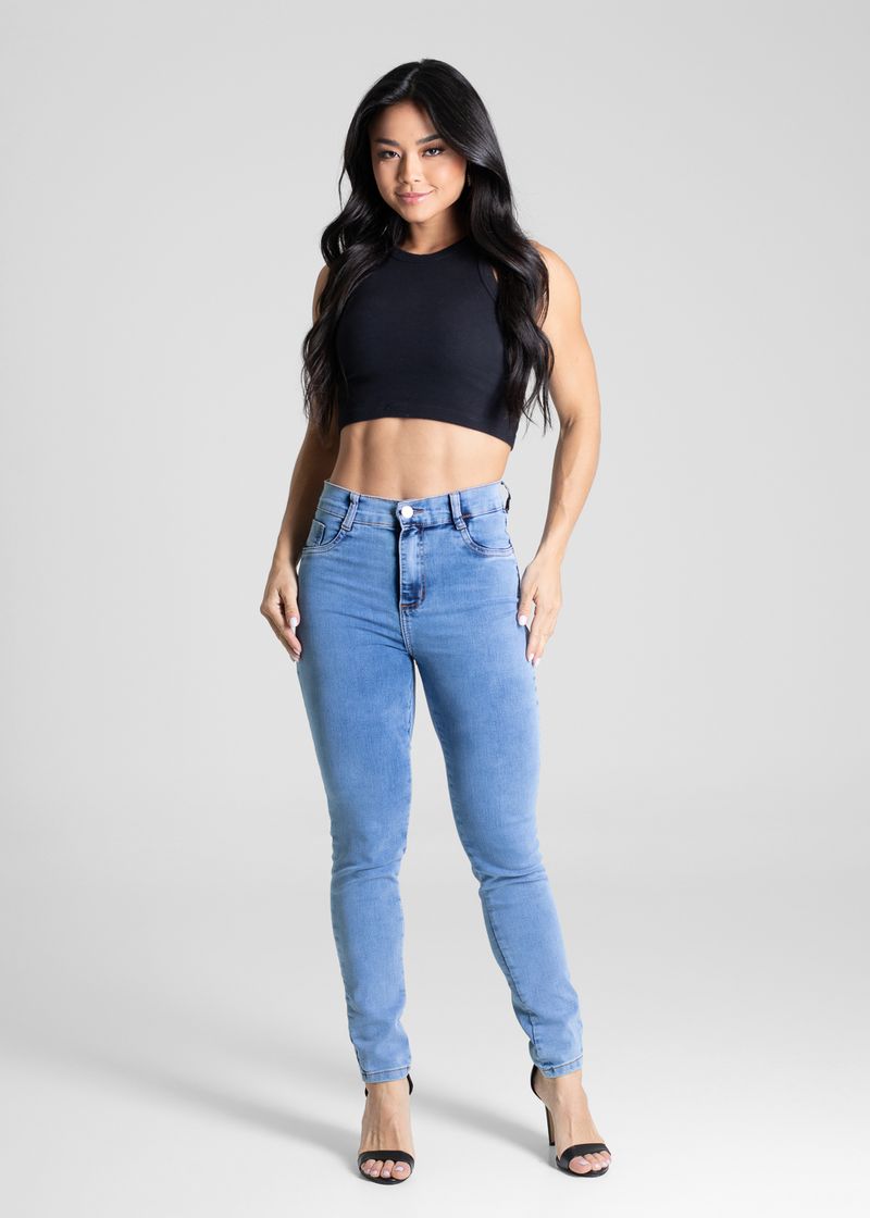 Calça cigarrete confeccionada em jeans. A modelagem é ajustada com o comprimento até o tornozelo. Cintura média Fechamento através de botão e zíper A barra tem acabamento simples Tecido: Jeans Tipo de Lavagem: Azul Cor: Azul