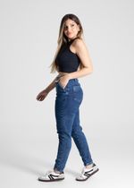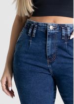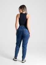 Calça mom confeccionada em jeans. A modelagem mom tem um caimento soltinho nos quadris e coxas ajustando até o tornozelo. Cintura alta Fechamento com botão e zíper Bolsos frontais e bolsos traseiros funcionais Barra simples Modelagem: Mom Tecido: Jeans Tipo de lavagem: Azul Cor: Azul
