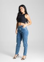 Calça mom confeccionada em jeans. A modelagem mom tem um caimento soltinho nos quadris e coxas ajustando até o tornozelo. Cintura alta Fechamento com botão e zíper Bolsos frontais e bolsos traseiros funcionais Barra simples Modelagem: Mom Tecido: Jeans Tipo de lavagem: Azul Cor: Azul Médio