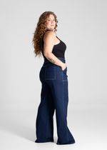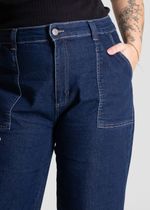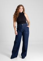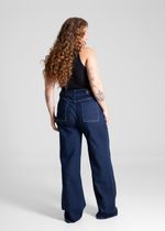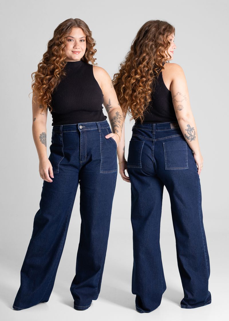 Calça feminina confeccionada em jeans. O modelo pantalona possui cintura alta, gancho no lugar e caimento amplo da coxa até a barra. Cintura alta Bolsos frontais e posteriores funcionais Barra simples Tecido: Jeans Tipo de Lavagem: Azul Cor: Azul médio