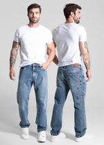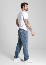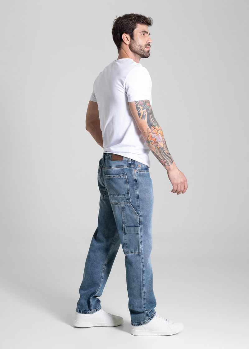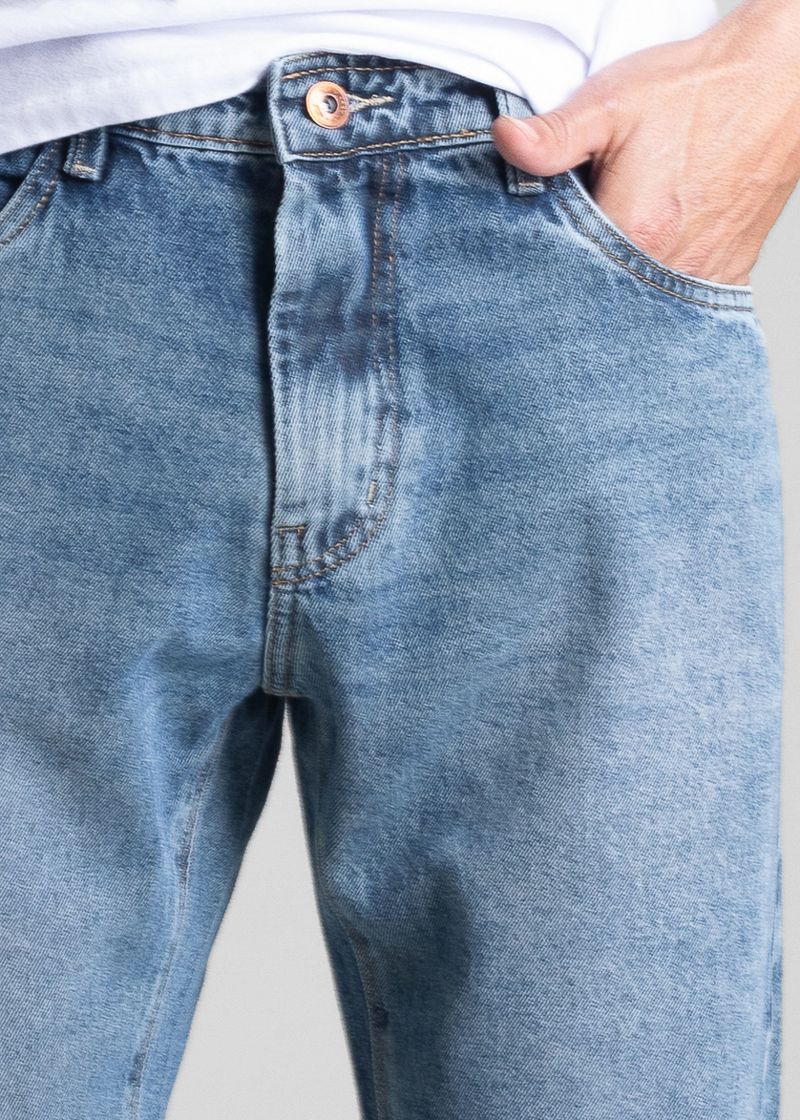 Calça relaxed confeccionada em jeans. O design é relaxed, uma modelagem mais solta no quadril e nas pernas Cintura média Fechamento com botão metálico e zíper Bolsos frontais e bolsos protetores Barra simples Modelagem: Men relaxed Tecido: Jeans Tipo de lavagem: Azul Cor: Azul médio