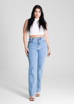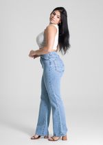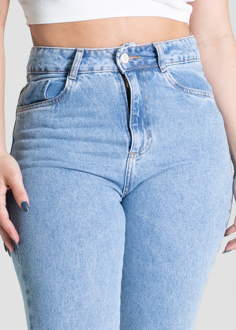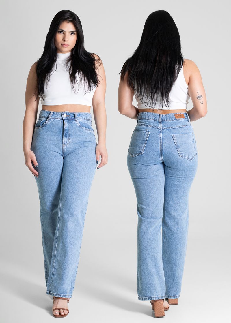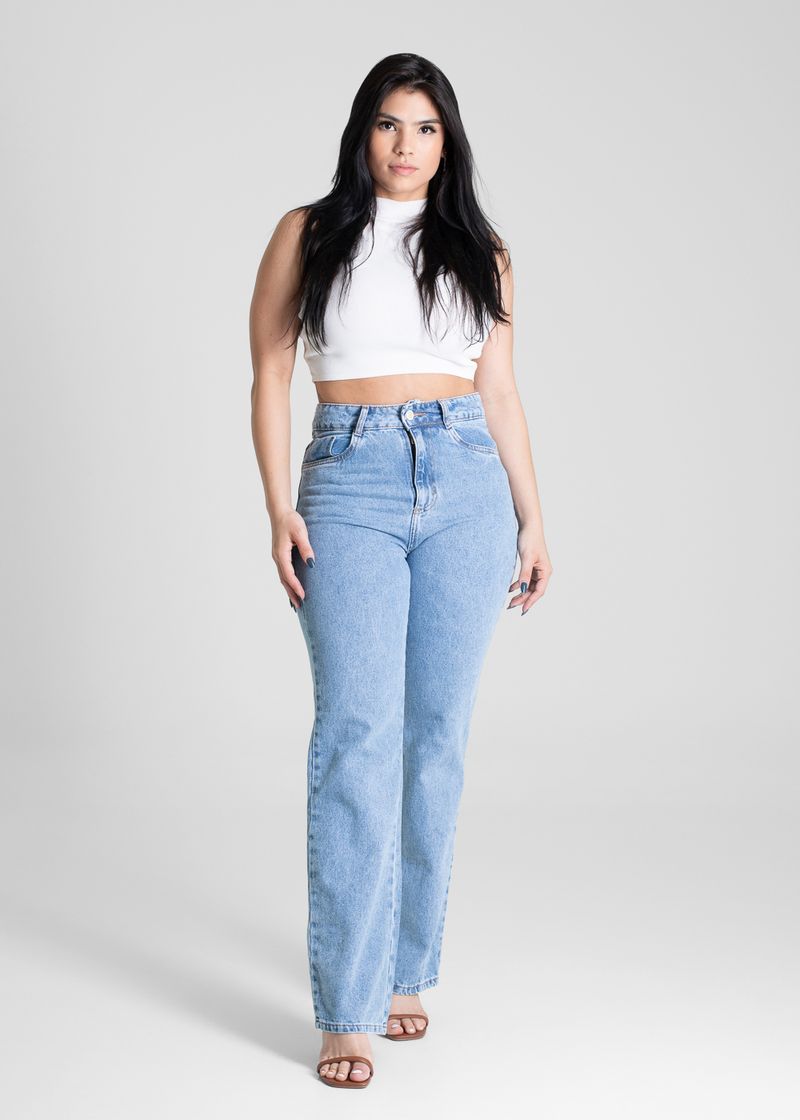 Calça jeans feminina de modelagem reta, com caimento mais solto ao corpo. Cintura média Fechamento com botão e zíper Bolsos frontais e bolsos traseiros funcionais Barra simples Tecido: Jeans Tipo de lavagem: Azul Cor: Azul medio