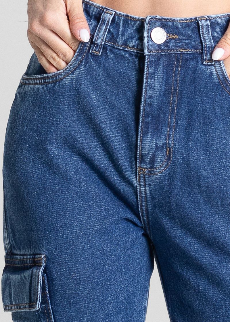 Calça feminina confeccionada em jeans. Modelo petit especialmente desenvolvido para mulheres de até 1,65m de altura, com o comprimento ideal que dispensa ajustes ou barra. Cintura alta Fechamento através de um botão e zíper Bolsos frontais e posteriores funcionais bolsos laterais cargo Barra simples Tecido: Jeans Tipo de Lavagem: Azul Cor: Azul médio
