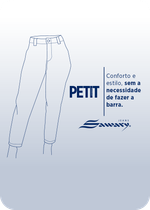 Calça feminina confeccionada em jeans. Modelo petit especialmente desenvolvido para mulheres de até 1,65m de altura, com o comprimento ideal que dispensa ajustes ou barra. Cintura alta Fechamento através de um botão e zíper Bolsos frontais e posteriores funcionais Barra simples Modelagem: Cargo Tecido: Jeans Tipo de Lavagem: color Cor: black