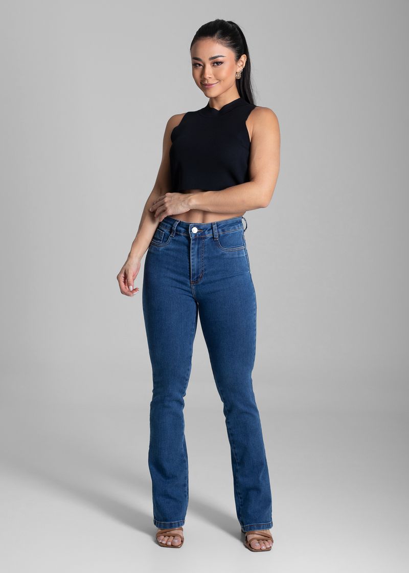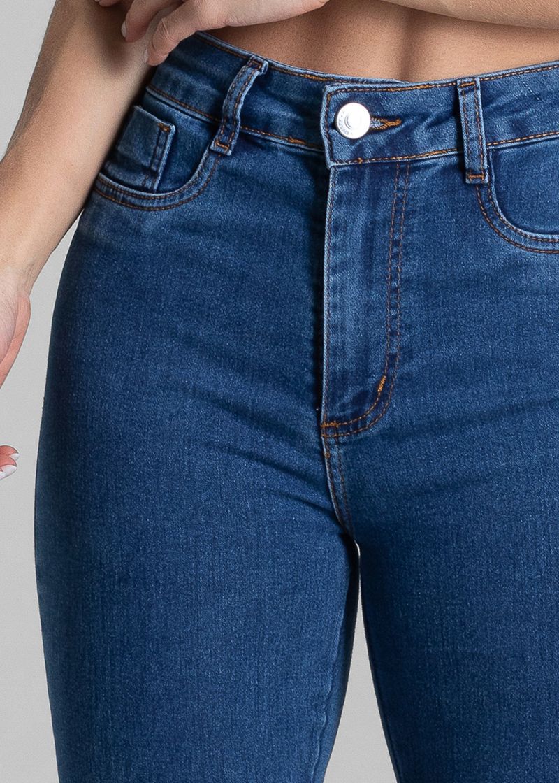Calça super lipo confeccionada em jeans. A modelagem possui uma cinta proporcionando ajuste perfeito para o seu corpo Cintura alta Fechamento com botão e zíper Bolsos frontais falsos e bolsos traseiros funcionais Barra acabamento simples Modelagem: Super lipo Tecido: Jeans Tipo de lavagem: Azul Cor: Azul