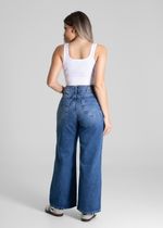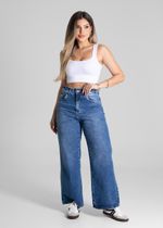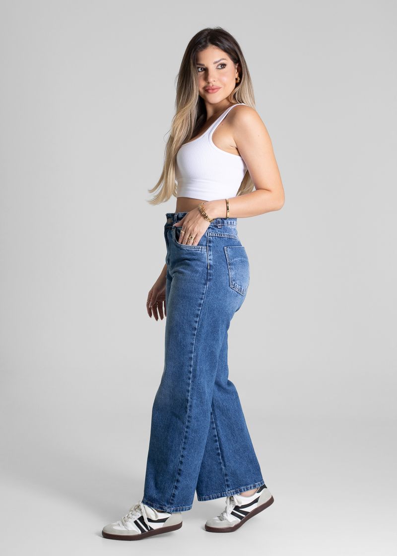 Calça feminina confeccionada em jeans. O modelo possui cintura super alta, gancho no lugar e caimento amplo da coxa até a barra. Cintura alta Fechamento através de um botão e zíper Bolsos frontais e traseiros funcionais barra simples Tecido: Jeans Tipo de Lavagem: Azul Cor: Azul medio