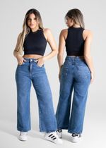 Calça feminina confeccionada em jeans. O modelo possui cintura super alta, gancho no lugar e caimento amplo da coxa até a barra. Cintura alta Fechamento através de um botão e zíper Bolsos frontais e traseiros funcionais barra simples Tecido: Jeans Tipo de Lavagem: Azul Cor: Azul medio