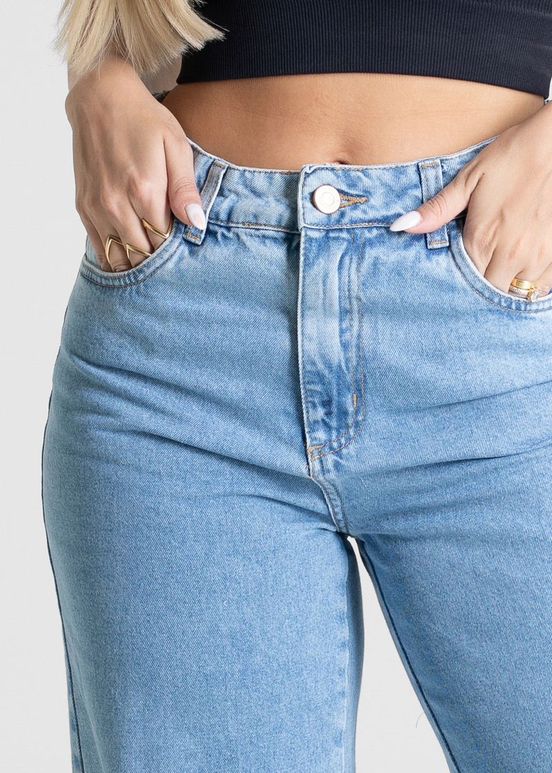 Calça feminina confeccionada em jeans. Modelo petit especialmente desenvolvido para mulheres de até 1,65m de altura, com o comprimento ideal que dispensa ajustes ou barra. Cintura alta Fechamento através de um botão e zíper Bolsos frontais e posteriores funcionais Barra simples Tecido: Jeans Tipo de Lavagem: Azul Cor: Azul médio