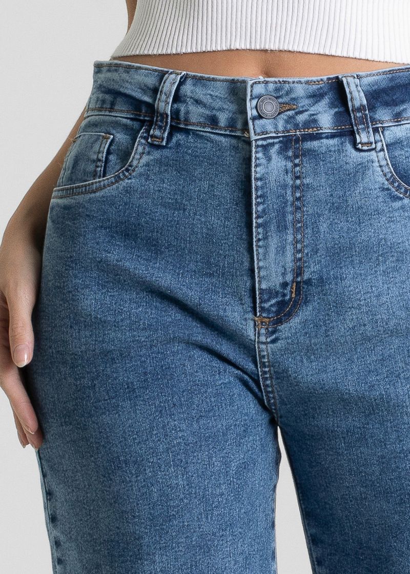 Calça feminina confeccionada em jeans. Modelo petit, especialmente desenvolvido para mulheres de até 1,65m de altura, com o comprimento ideal que dispensa ajustes ou barra. Cintura alta Fechamento através de um botão e zíper Bolsos frontais e posteriores funcionais Barra diferenciada Tecido: Jeans Tipo de Lavagem: Azul Cor: Azul claro