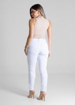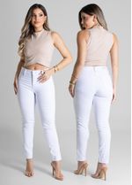 Calça cigarrete confeccionada em sarja. A modelagem é moderna e confortável para todas as ocasiões. Cintura média Fechamento através de botão e zíper Bolsos frontais falsos e traseiros simples funcionais Barra simples Tecido: Sarja Tipo de Lavagem: Color Cor: branco