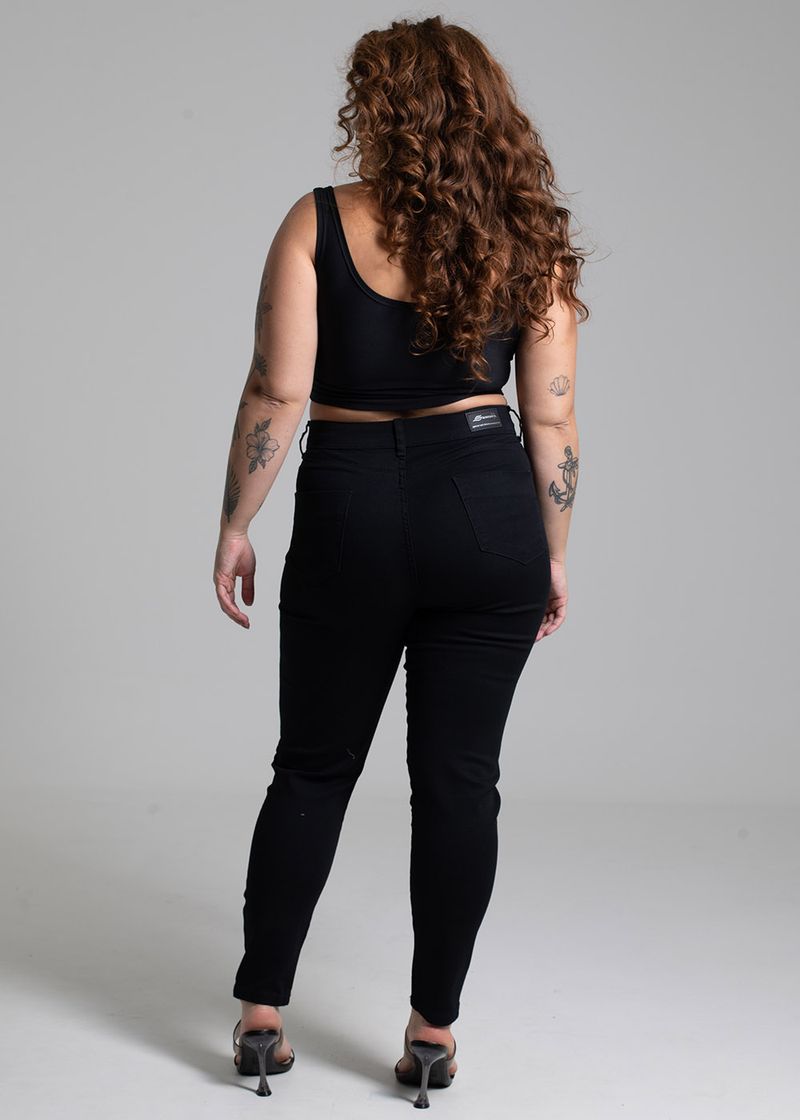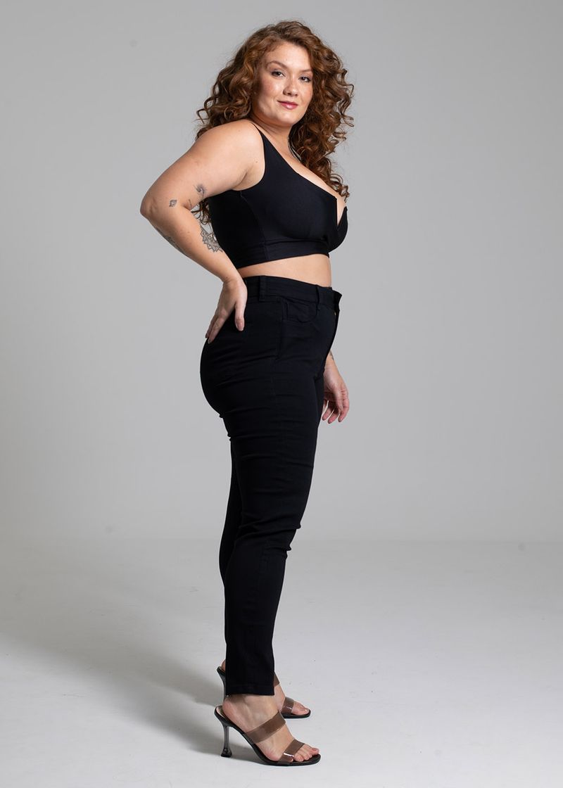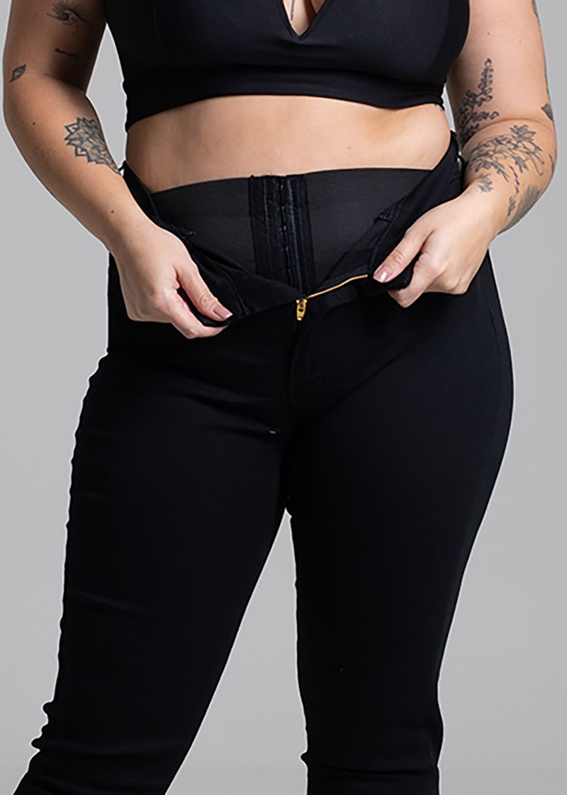 Calça Plus Size/Super Lipo confeccionada em jeans. A modelagem super lipo possui uma cinta modeladora interna proporcionando ajuste perfeito para seu corpo. Cintura alta Fechamento com botão e zíper Bolsos frontais falsos e bolsos traseiros funcionais Barra simples Tecido: Sarja Tipo de lavagem: Color Cor: Preto