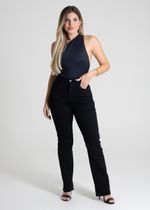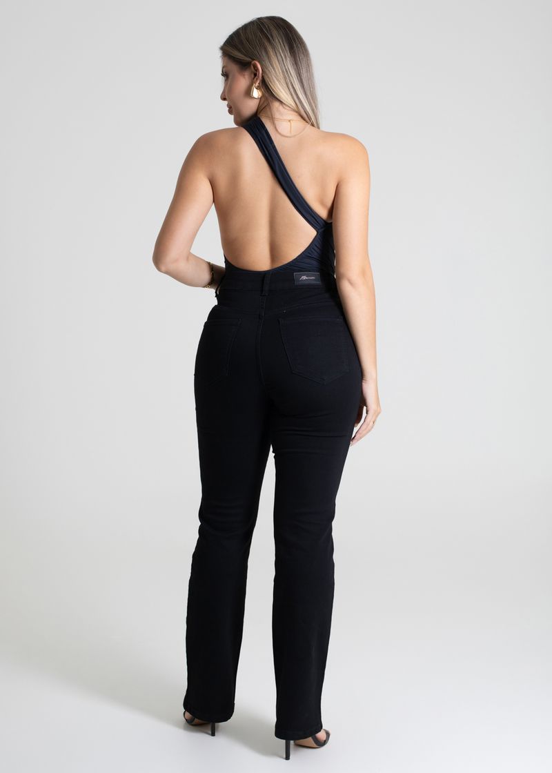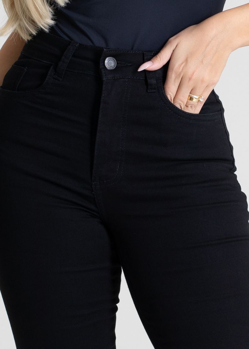 Calça jeans feminina de modelagem sarja, com caimento mais solto ao corpo. Cintura alta Fechamento com botão e zíper Bolsos frontais e bolsos traseiros funcionais Barra simples Tecido: Sarja Tipo de lavagem: Color Cor: preta