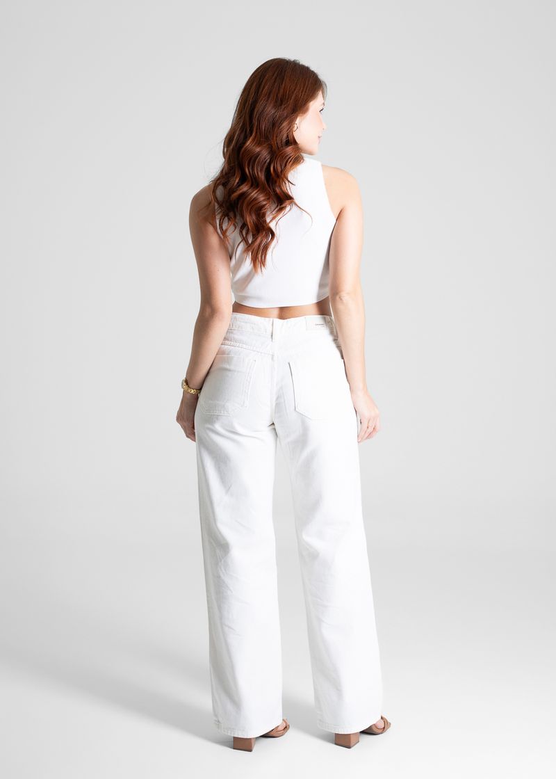 Calça feminina confeccionada em sarja O modelo pantalona possui cintura alta, gancho no lugar e caimento amplo da coxa até a barra.Cintura alta Fechamento através de um botão e zíper. Diferencial bolsos frontais cargo Cintura alta B olsos frontais bolsos e posteriores funcionais Barra simples Tecido: Jeans Tipo de Lavagem: color Cor: Off White