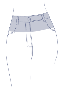 Com cinta modeladora curta por toda a circunferência, para alinhar a cintura.