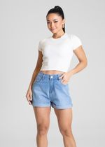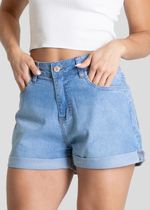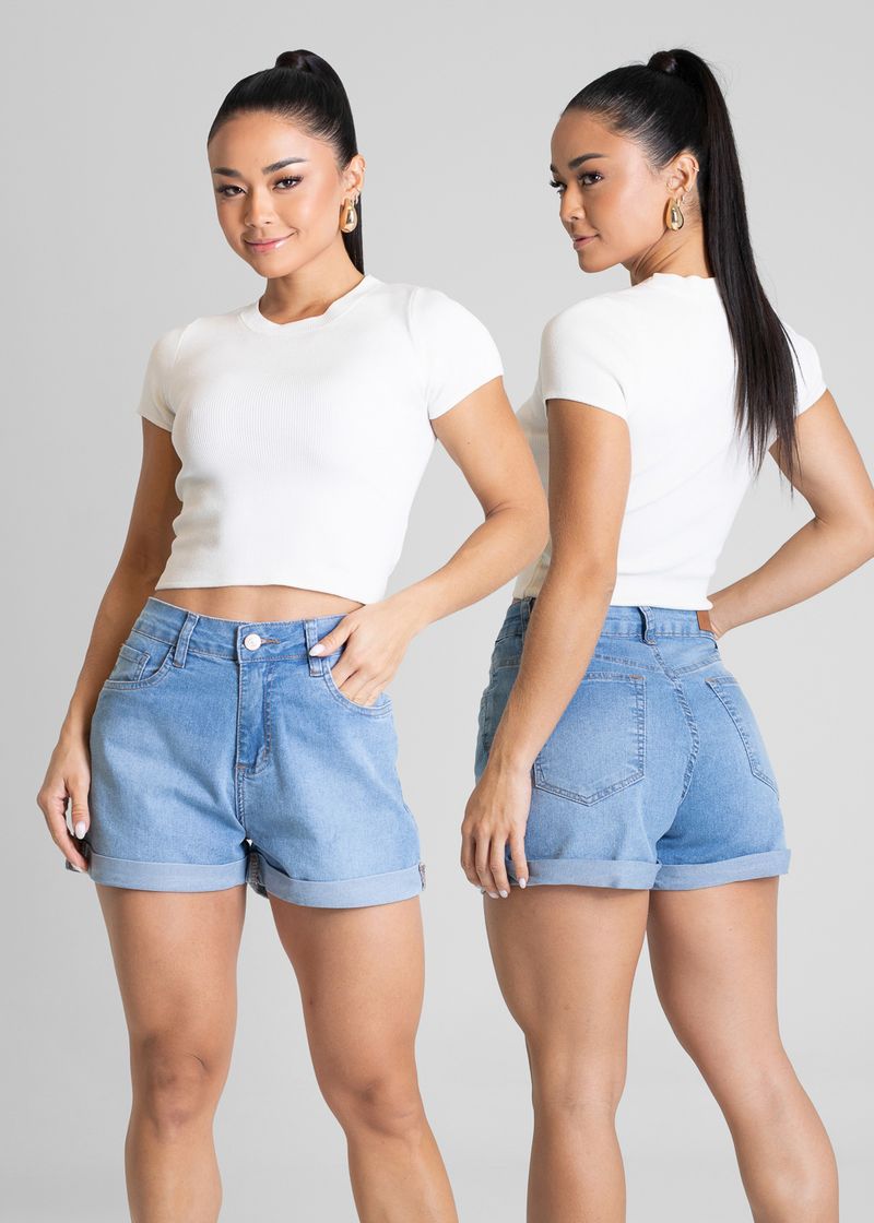 Shorts confeccionada em jeans. Modelagem soltinho. Cintura média Fechamento com botão e zíper Bolsos frontais e bolsos traseiros funcionais bolsos laterais cargo Barra dobrada Tecido: Jeans Tipo de lavagem: Azul Cor: Azul